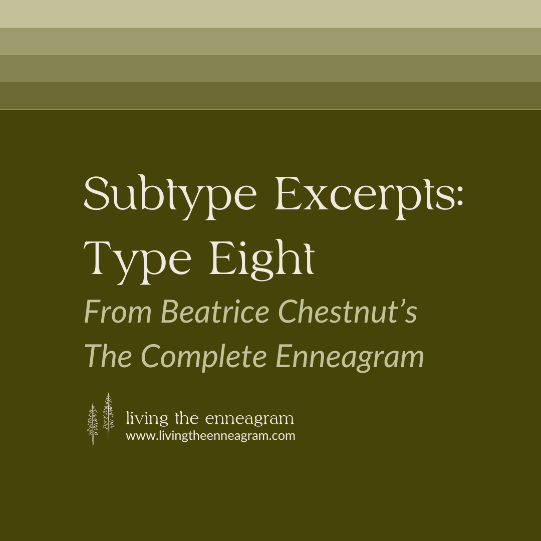 Exploring your dominant subtype is an important part of accurately identifying your Enneagram Type. Take a peek at information related to the Type Eight subtypes, as well as additional resources you may want to explore to learn more.